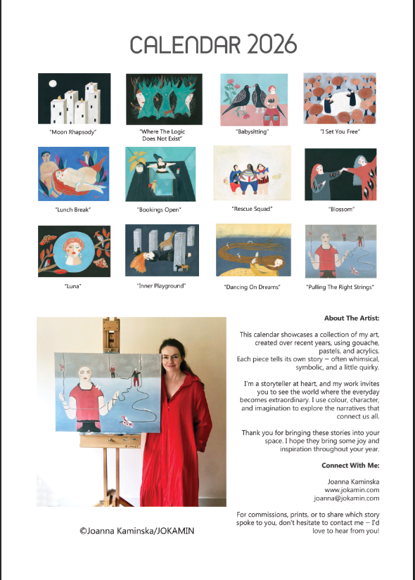 Bring a touch of magic into your everyday with this limited edition art calendar featuring 12 original paintings created with gouache, pastels, and acrylics.