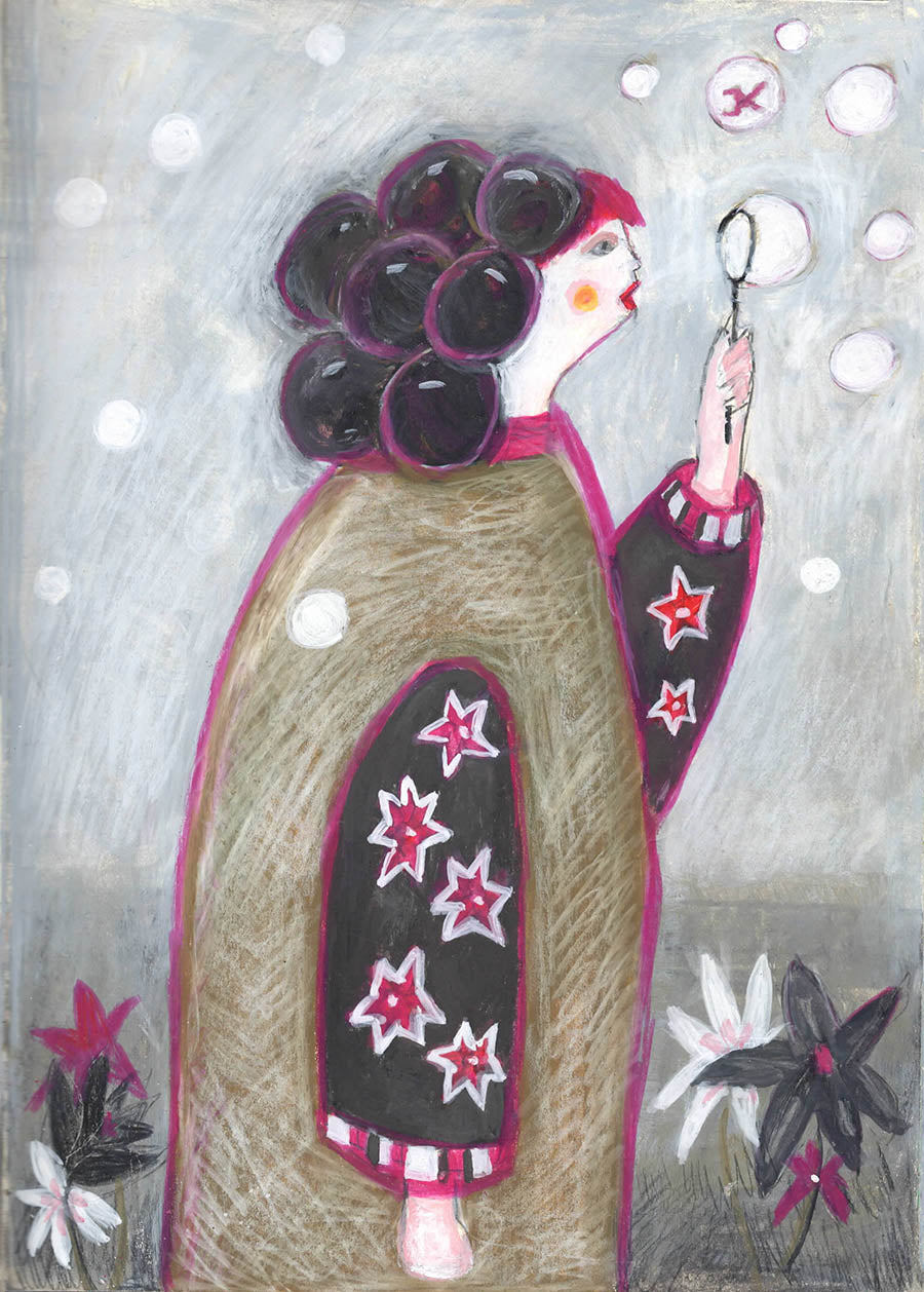 This is a painting on acid free paper made with wax crayons and gouache paint. It comes with a mount and a backing and is ready for framing if you wish so.
