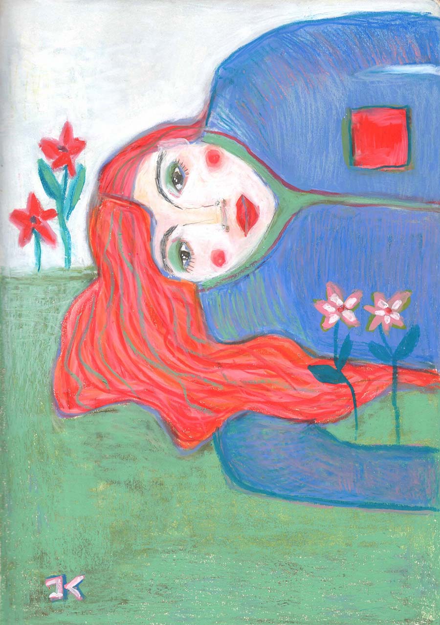 This is a painting on acid free paper made with wax crayons and gouache paint. It comes with a mount and a backing and is ready for framing if you wish so.